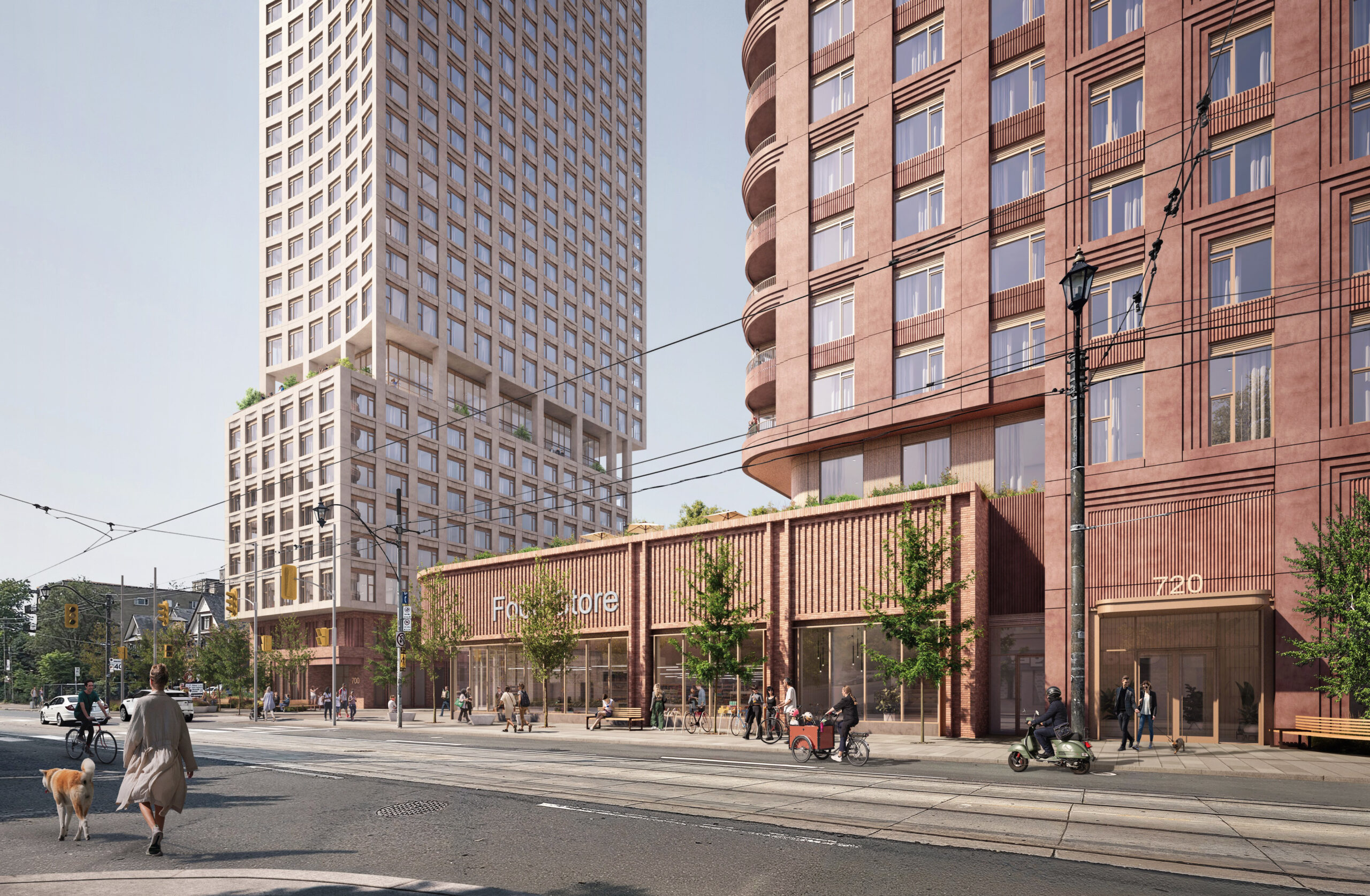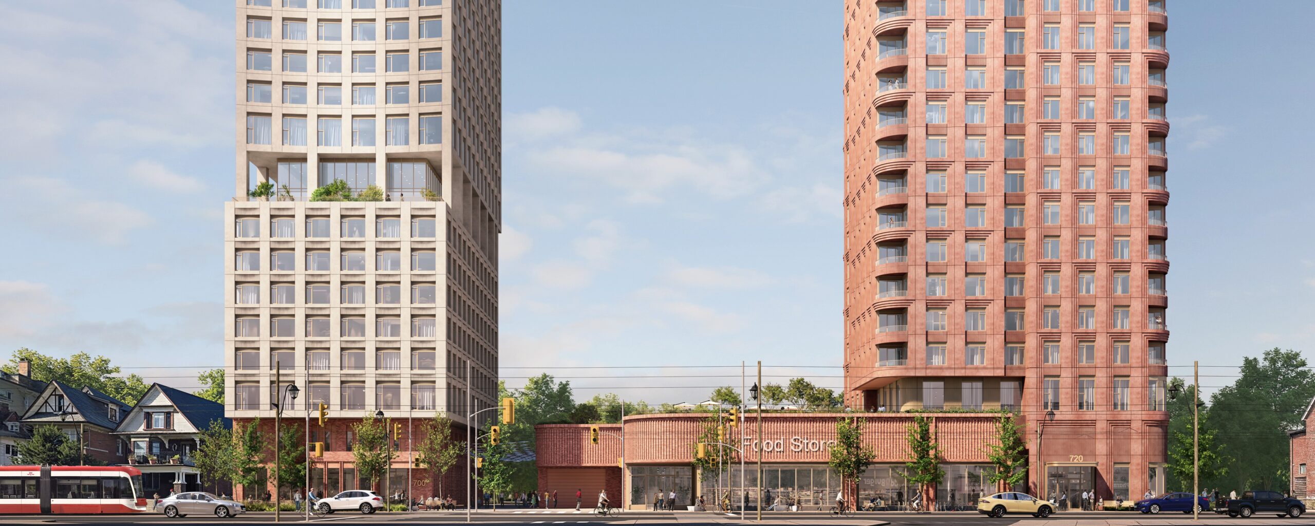 720 Broadview will be transformed with two new buildings at 39 and 42-storeys, introducing 857 new residential rental units, a refreshed grocery store, and an enhanced open space and streetscape only steps away from Broadview Station.